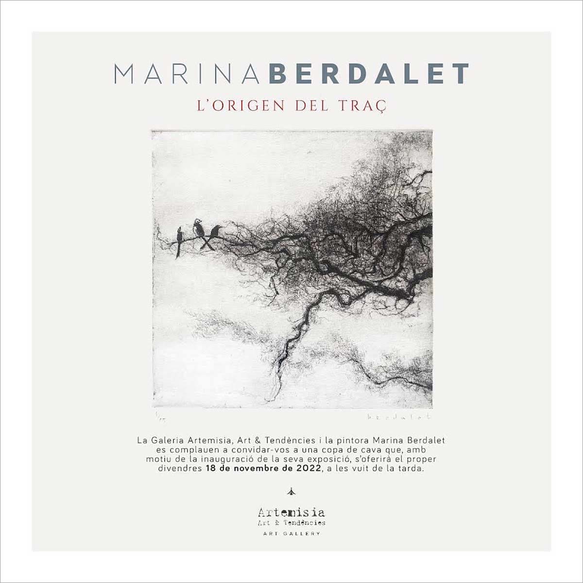 “L’origen del traç” recull obres de diferents formats que va començar a fer l’any 2013, I que continua el dia d’avui. Una sèrie que és una constant en l’obra de Berdalet. En aquesta, el llapis de grafit pren el protagonisme. Un primer traç, a l’atzar, gestual, marca el ritme de l’obra. Al voltant d’ell, múltiples noves línies. De manera lenta, repetitiva, constant, nous traços que es van connectant, pretenen una profunditat en el pla, però amb els mínims recursos, fins a crear una composició harmoniosa i plena de ritme, que evoca sens dubti la natura. Va escriure sobre aquesta sèrie l’artista Maurice Maillard “Els blancs preservats del paper són respiració i alè, repòs i poesia. Grafit, però també tinta i pinzell. La grafia es fa més densa, el contrast del negre i el blanc tendeix a dramatitzar la intenció i a inscriure-la en una història de l’art que té en compte l’experiència de mestres moderns. El paisatge neix de les relacions de línies, de taques i de superfícies, més que no d’una voluntat descriptiva que tendiria cap a l’anècdota”.